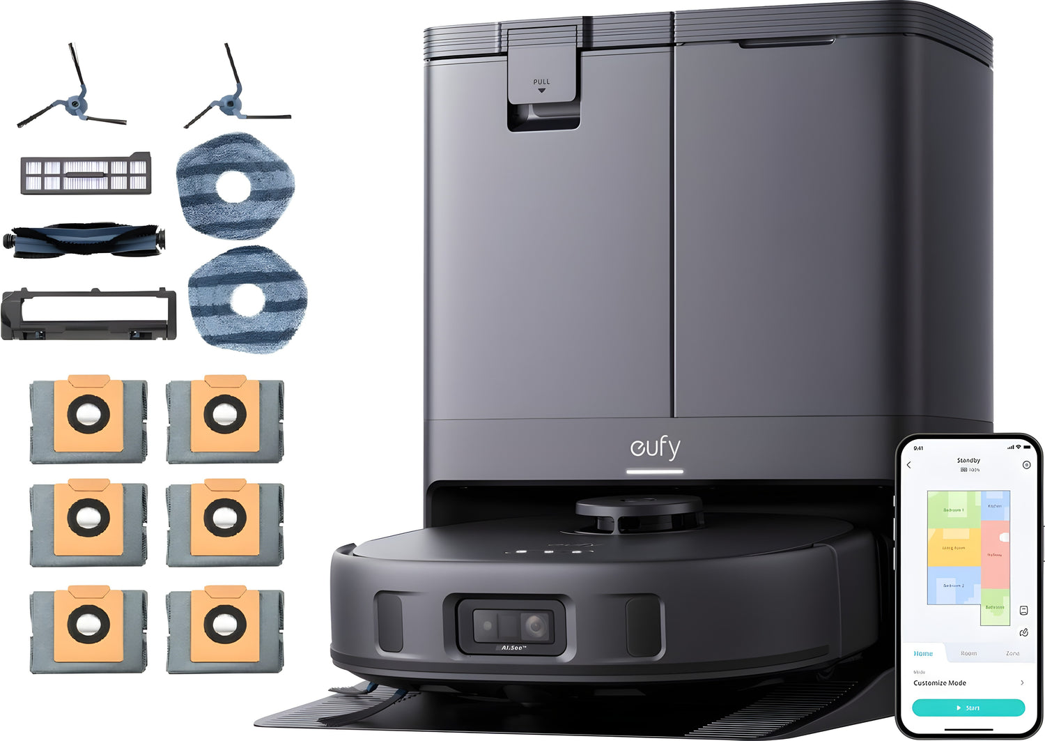 Eufy Clean X10 Pro Omni robotstofzuiger Zwart met dweil en Vervangingssets- Robot Vacuum 8000 Pa zuigkracht, tapijt detectie AI-obstakel vermijding, wast en droogt de dweil, automatisch legen en vullen