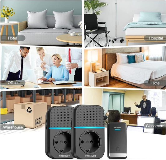 Tecknet Draadloze Deurbel - Deurbelset - met 2 ontvanger - Duurzame zender zonder batterijen - Zwart
