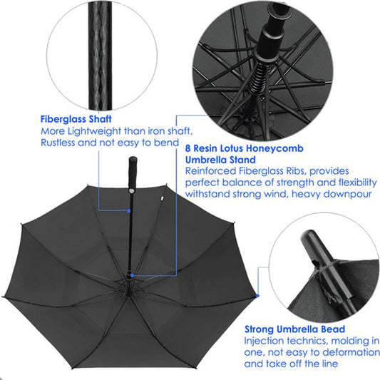 Beefree paraplu XL - 100% glasvezel frame - windproof - zwart Ø 125cm