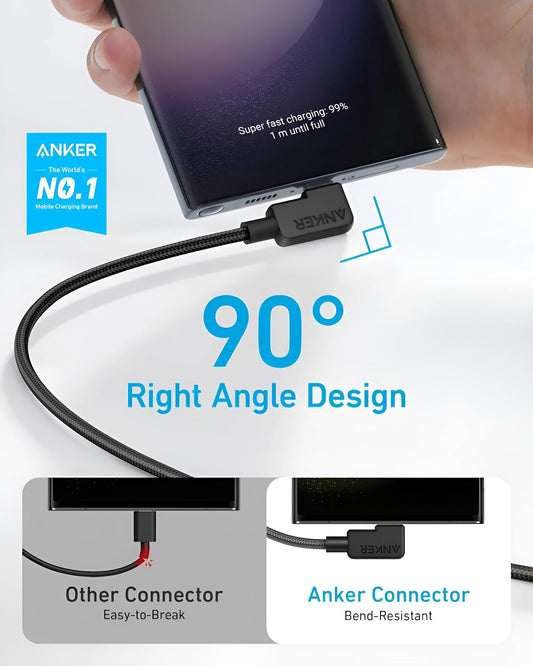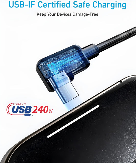 Anker USB-C Right Angle Cable, 240 W, twee gevlochten 180cm-oplaadkabels met USB-C- en haakse USB-C-poort