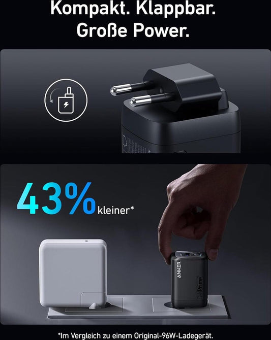 Anker Prime GaN 67W USB Oplader, 3-Poort Quick Charger
