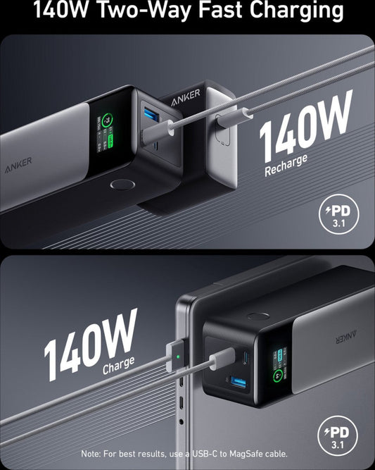 Anker 737 - Power Bank (PowerCore 24K), 24.000mAh 3 - poorts draagbare oplader met 140W output - slim digitaal display
