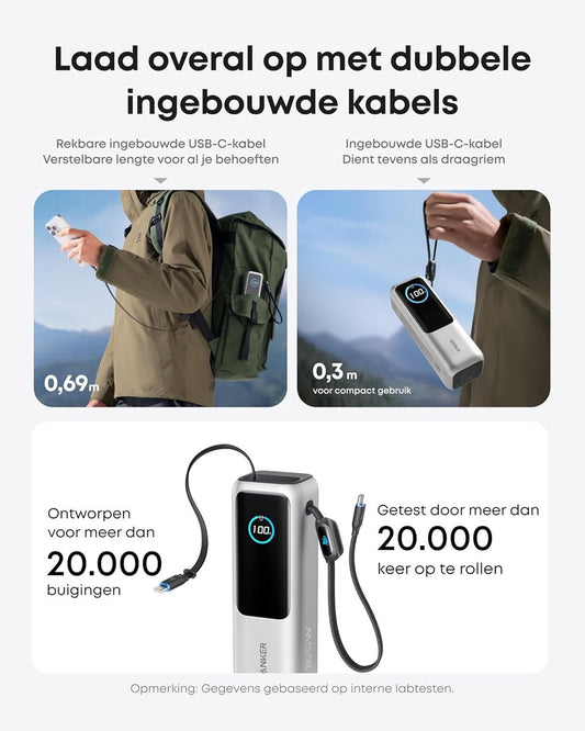 Anker 737 - Power Bank (PowerCore 24K), 24.000mAh + Anker Prime GaN 67W USB snel Oplader, 3-Poort Quick Charger- VoordeelBundel