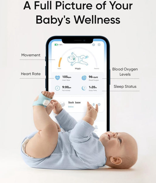 eufy Baby S340 - Smart Sock Babyfoon - 2.4 GHz Wi-Fi - Houd slaappatronen, dutjes, hartslag en bloedzuurstof bij - Voor kinderen van 0 tot 18 maanden.