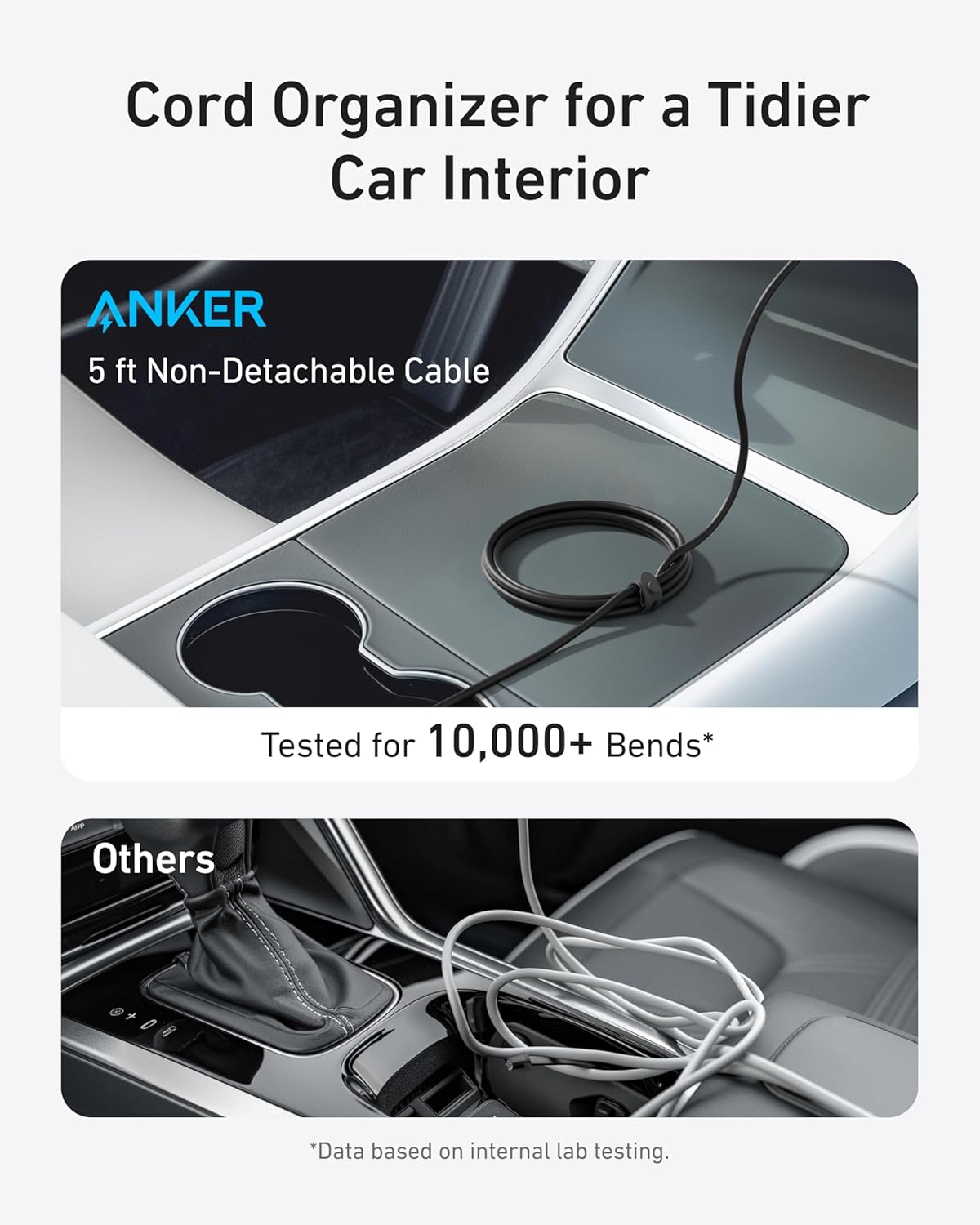 - Ready, Set, Drive: De alles-in-één autolaadset wordt compleet geleverd met een ingebouwde USB-C-kabel, snoerorganizer en een krachtige 25W-adapter.