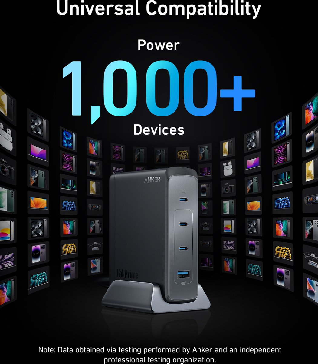 Anker Prime oplader (240 W, USB-C) - compacte GaN-oplader met 4 poorten voor MacBook Pro/Air, iPhone 15/Pro, iPad Pro, Dell XPS, Galaxy S23/S22, Note20, Pixel, Apple Watch en meer