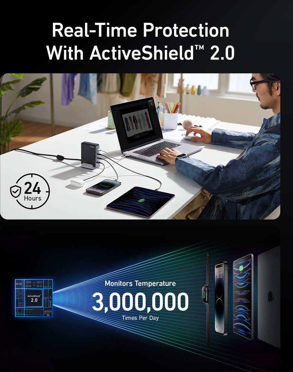 - Veiligheid staat voorop met ActiveShield 2.0: Voortdurende veiligheid door een continue temperatuurbewaking die drie miljoen keer per dag controles uitvoert om de oplaadprestaties te optimaliseren.