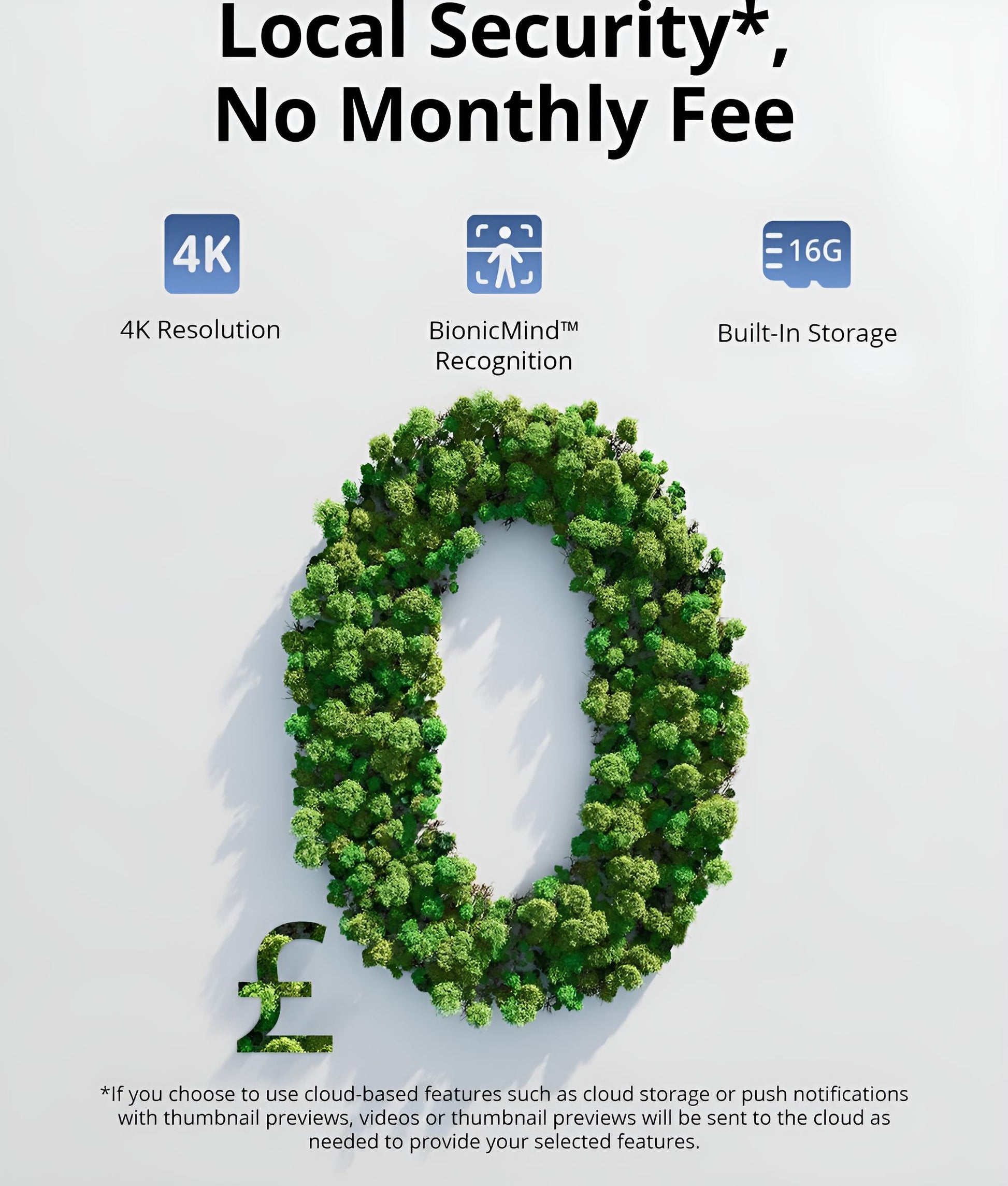 - Uitbreidbare lokale opslag: met dit lokale 4K-beveiligingscamerasysteem heeft u controle over uw eigen gegevens met versleuteling van militaire kwaliteit. U kunt de lokale opslag zelfs uitbreiden tot 16 TB met een draagbare harde schijf (niet meegeleverd), zodat u een leven lang aan video kunt opslaan zonder maandelijkse kosten.
