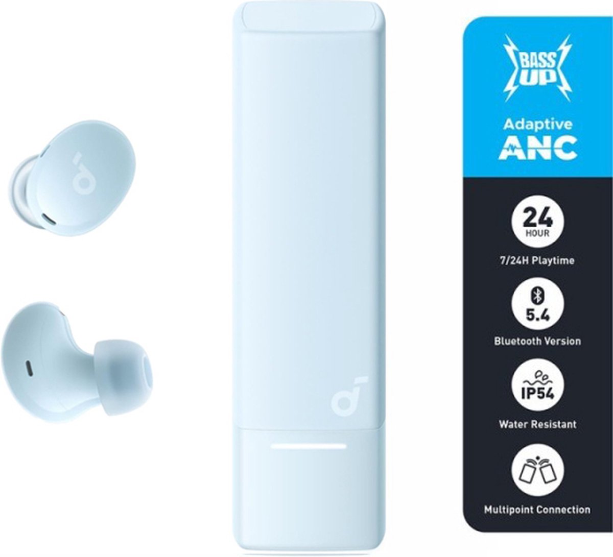 soundcore A30i NEW, noise cancelling oordopjes, lipstick-vormig ontwerp, klein, lichtgewicht comfort, helder geluid, 24 uur speeltijd, IP54, draadloze oordopjes, Bluetooth 5.4-L - Light Blauw