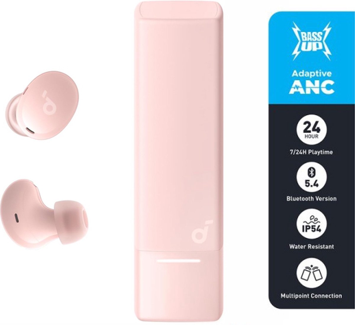 Soundcore A30i NEW, noise cancelling oordopjes, lipstick-vormig ontwerp, klein, lichtgewicht comfort, helder geluid, 24 uur speeltijd, IP54, draadloze oordopjes, Bluetooth 5.4-L - Roze